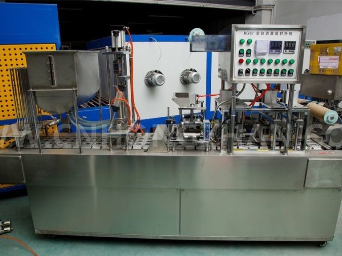 This machine is made of stainless steel with easy equipment, it has been long tested and its performance gained a very high reputation from our clients because of its easy operation and smooth work in low failure rate. We can produce the machine under the customer's special requirements. Machine suitable for beverage, such as soil bean, milk, fruit juice, mineral water. And it can automatically do cup setting, filling, photoelectric pattern proofread, sealing, printing date, cutting &discharging. With photo cell Automatic drop cup sets